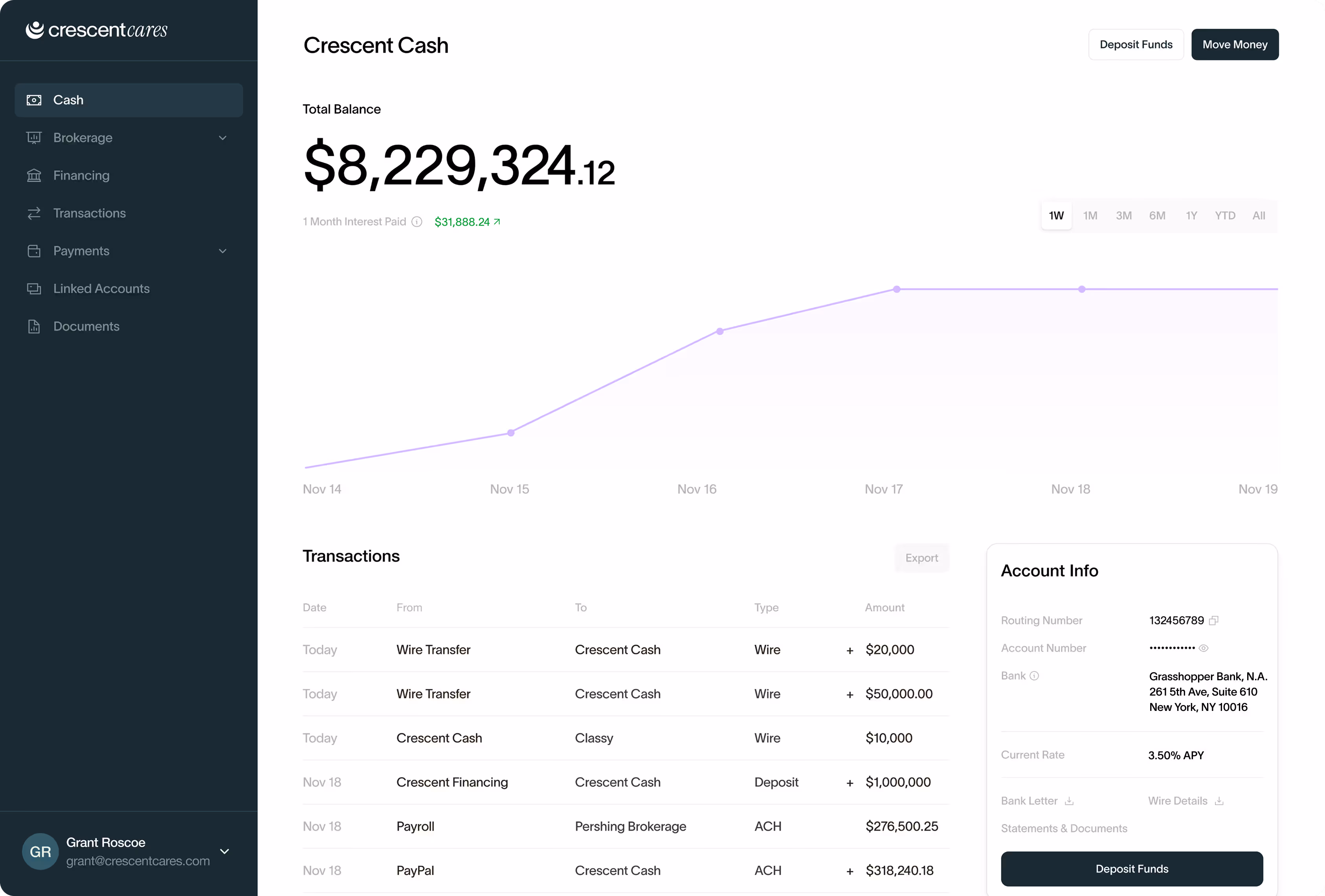 Crescent Financial Inc. is a financial technology company, not an FDIC-insured depository institution. Banking services are provided by Grasshopper Bank, N.A., Members FDIC.